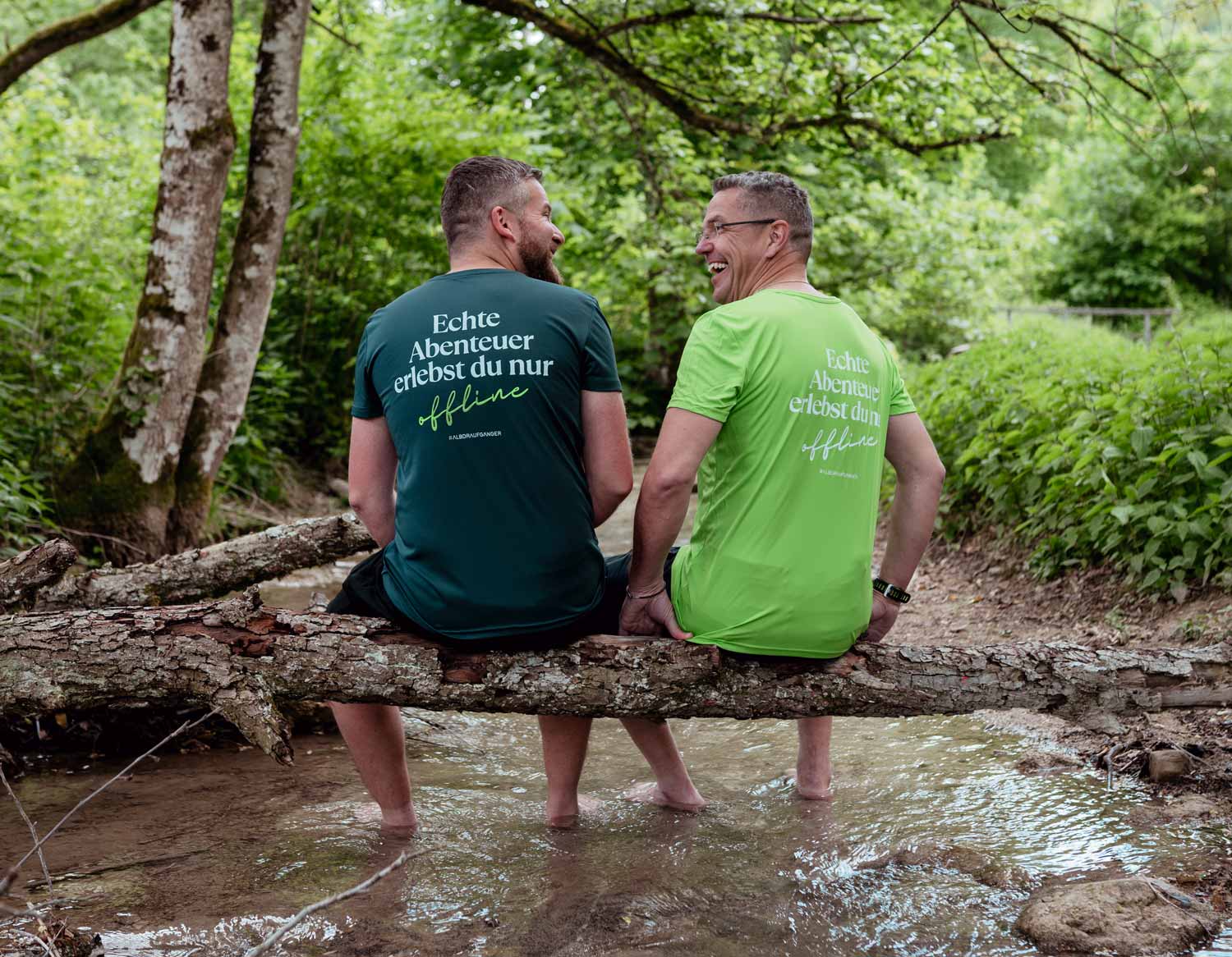 Mit der Message „Echte Abenteuer erlebst du nur offline“ tragen unsere Shirts, Sweater und Hoodies mehr als nur Stoff: Sie transportieren Haltung.